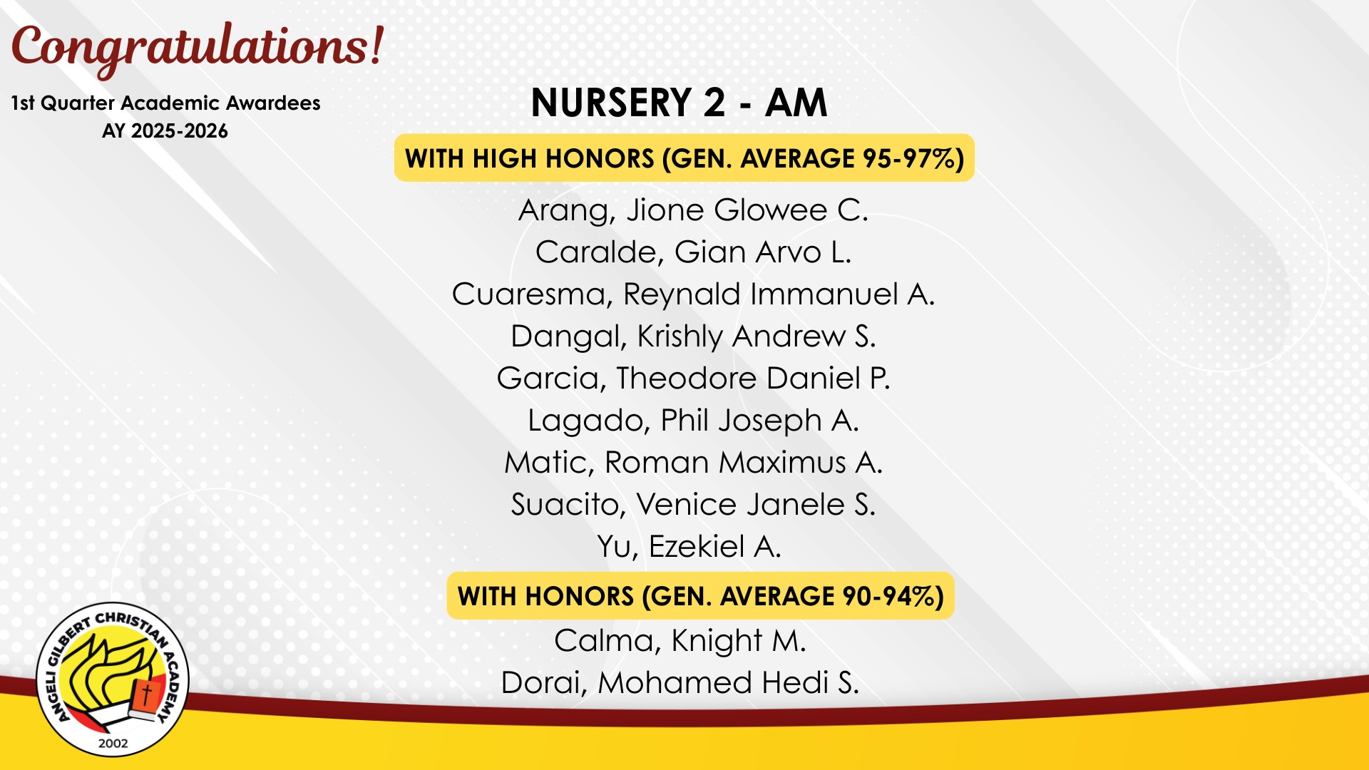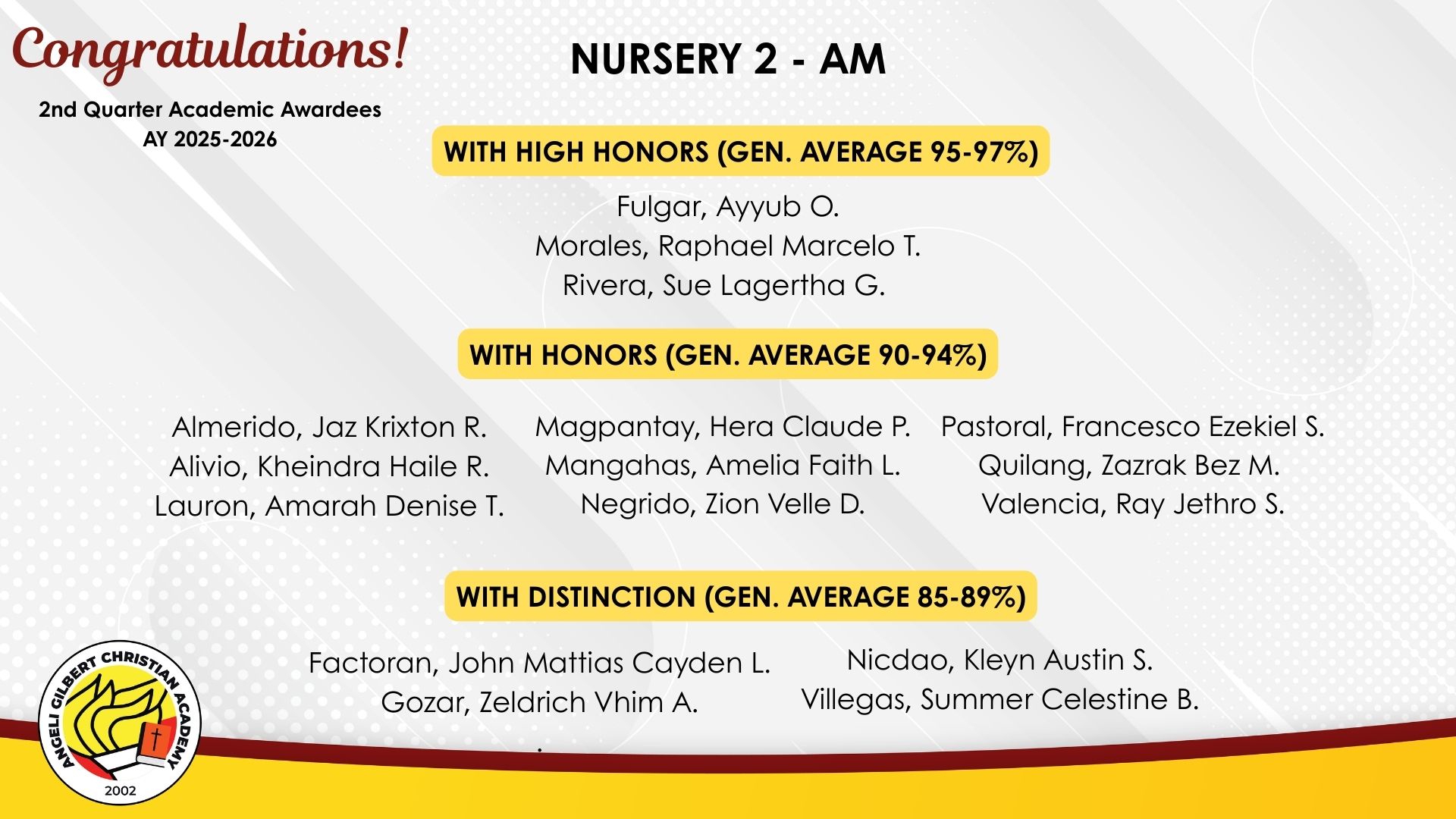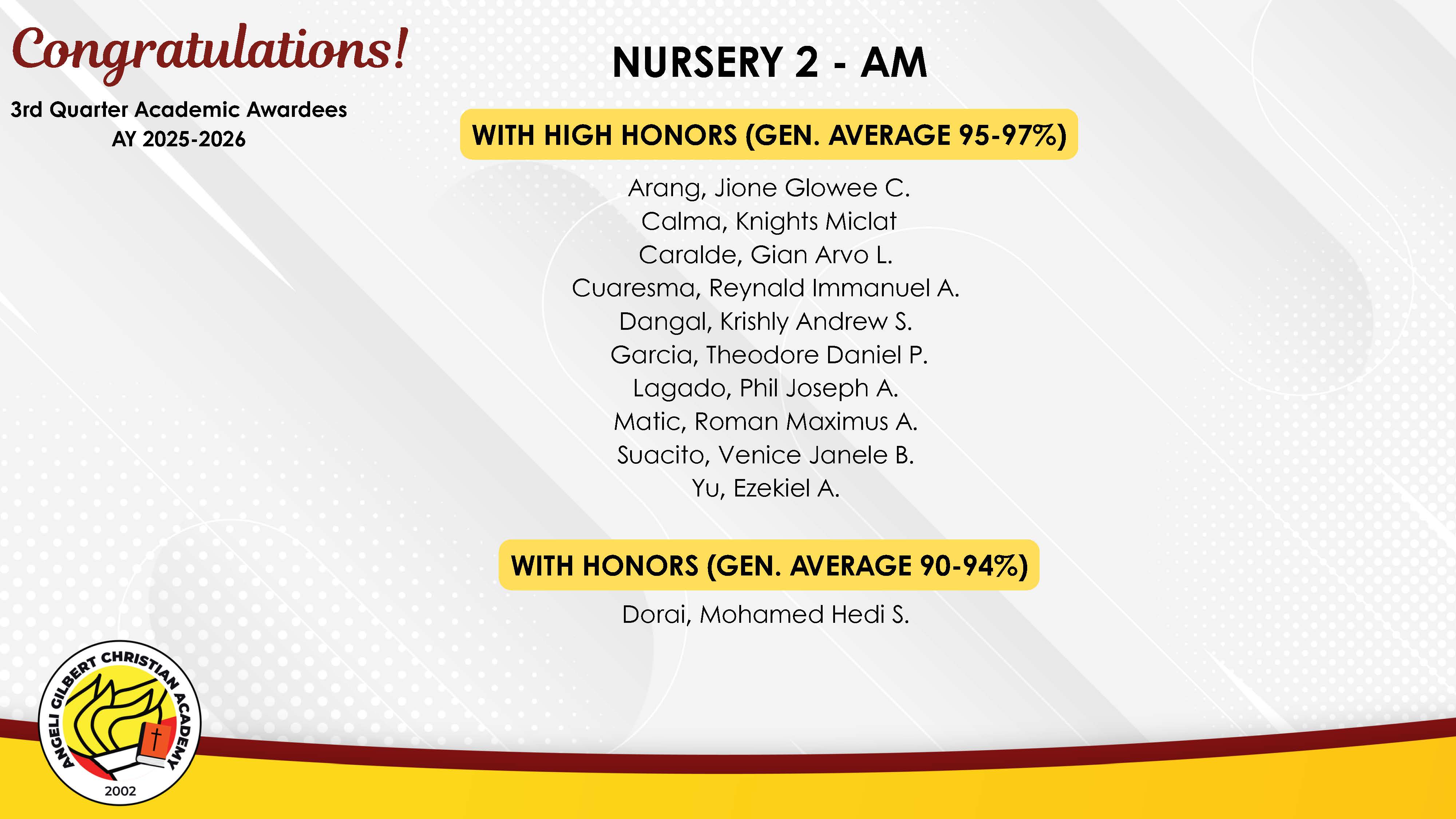 Basic Level - AM Class Awardees