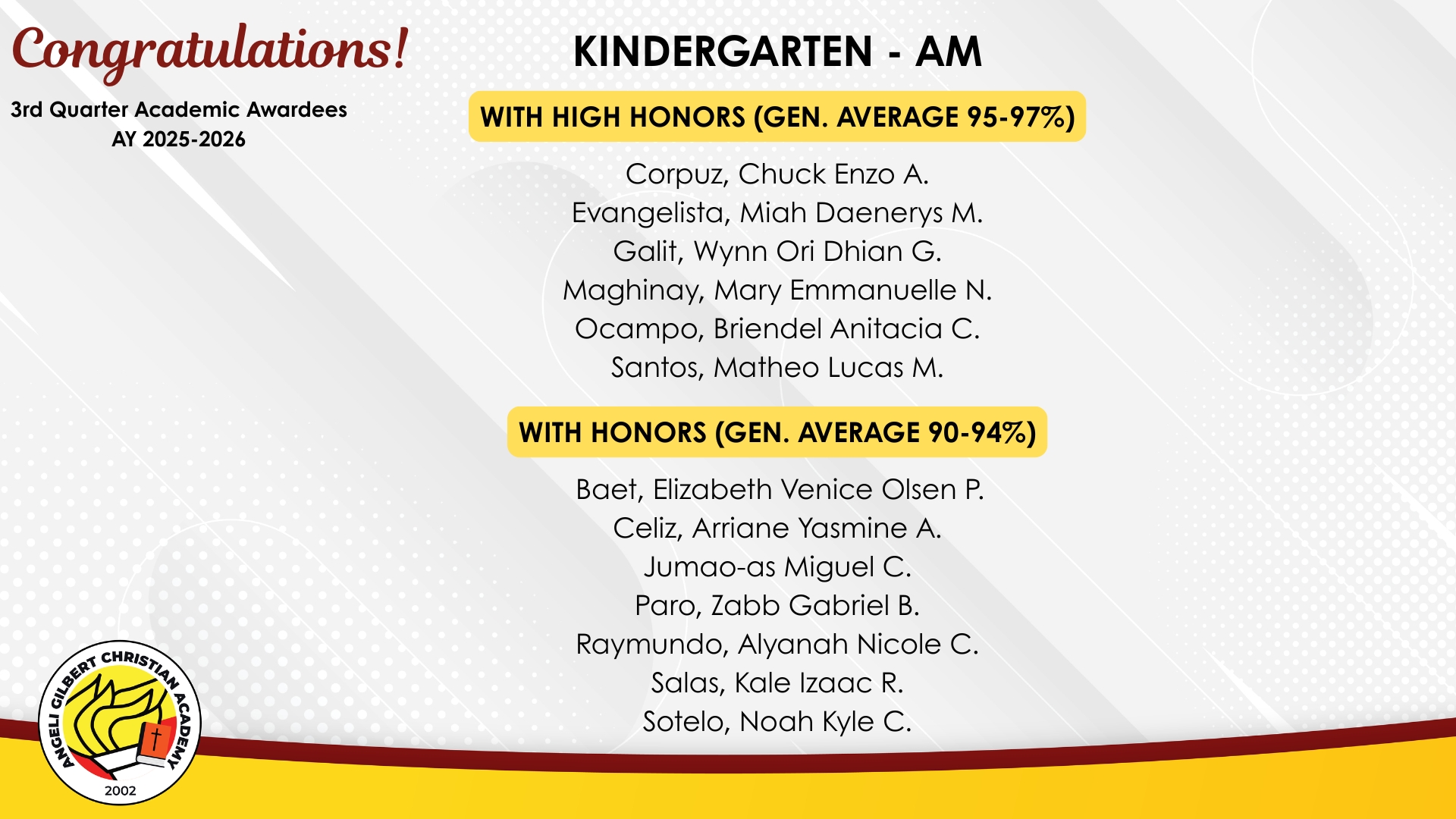 Class Awardees