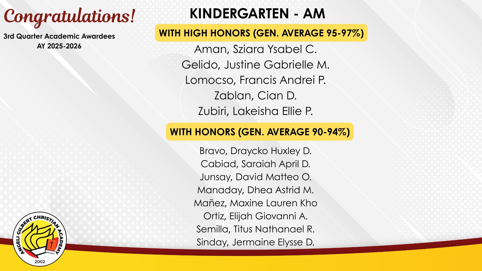 Advanced Level - AM Class Awardees