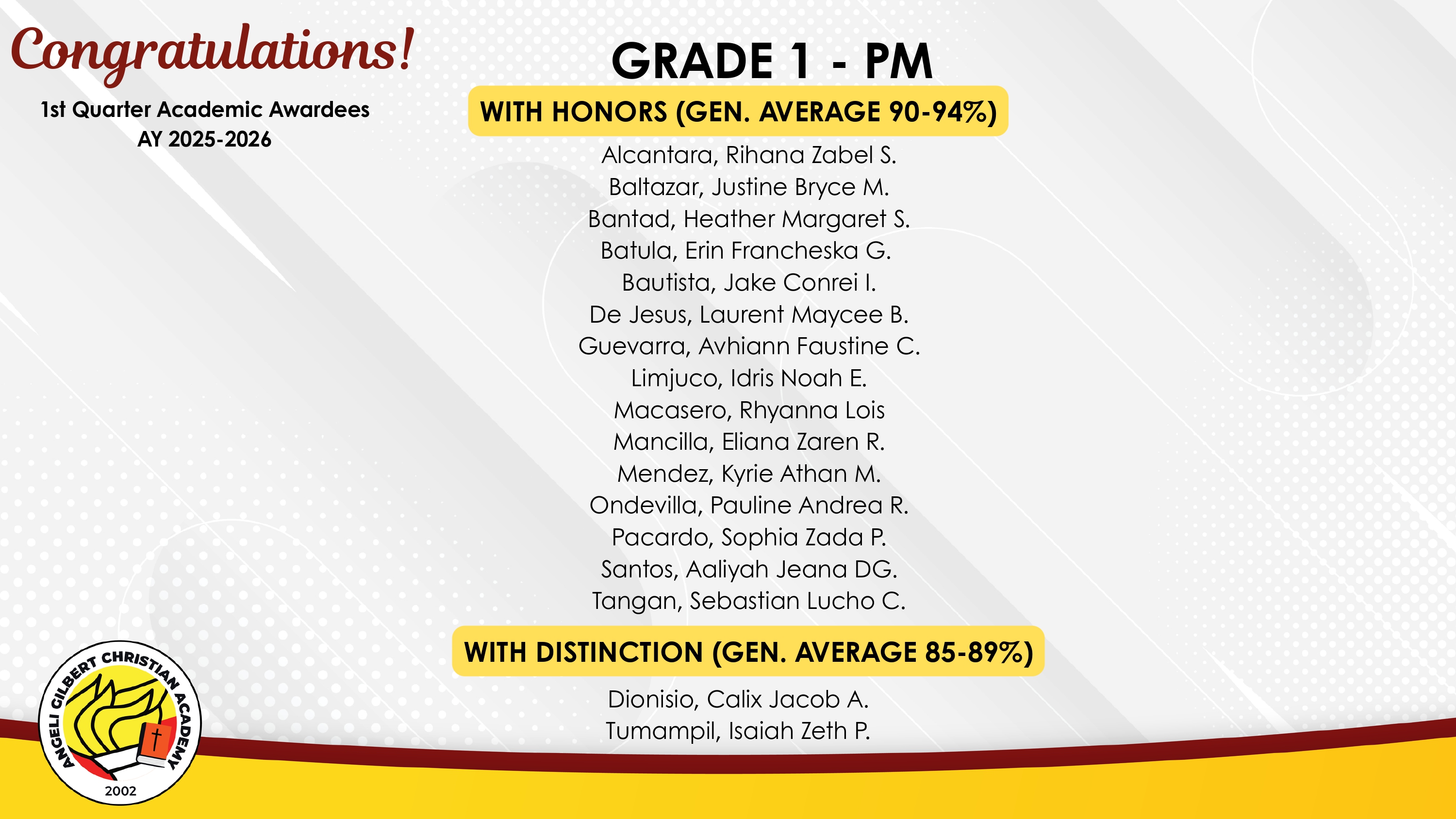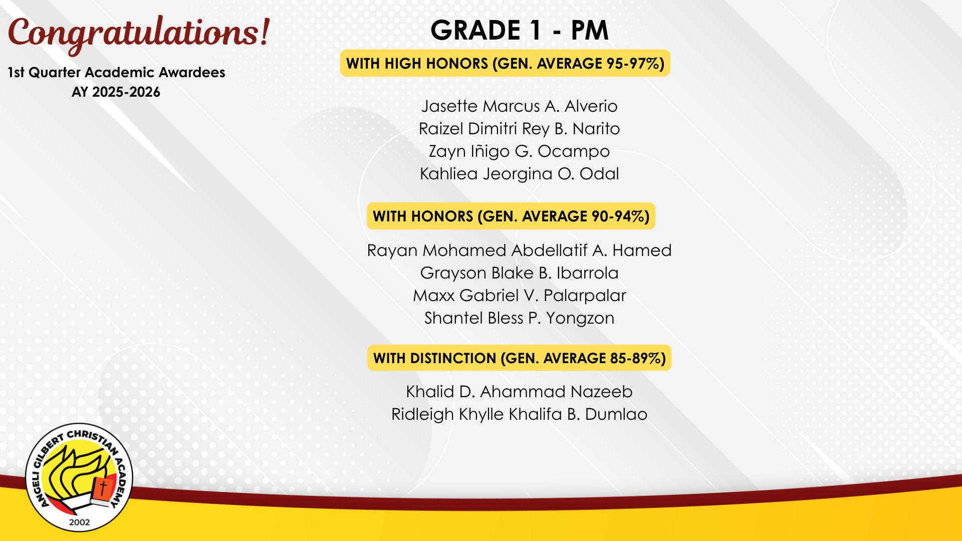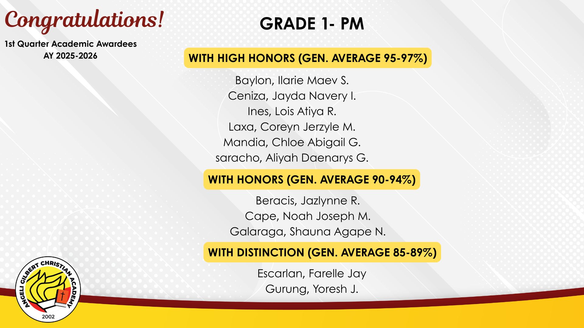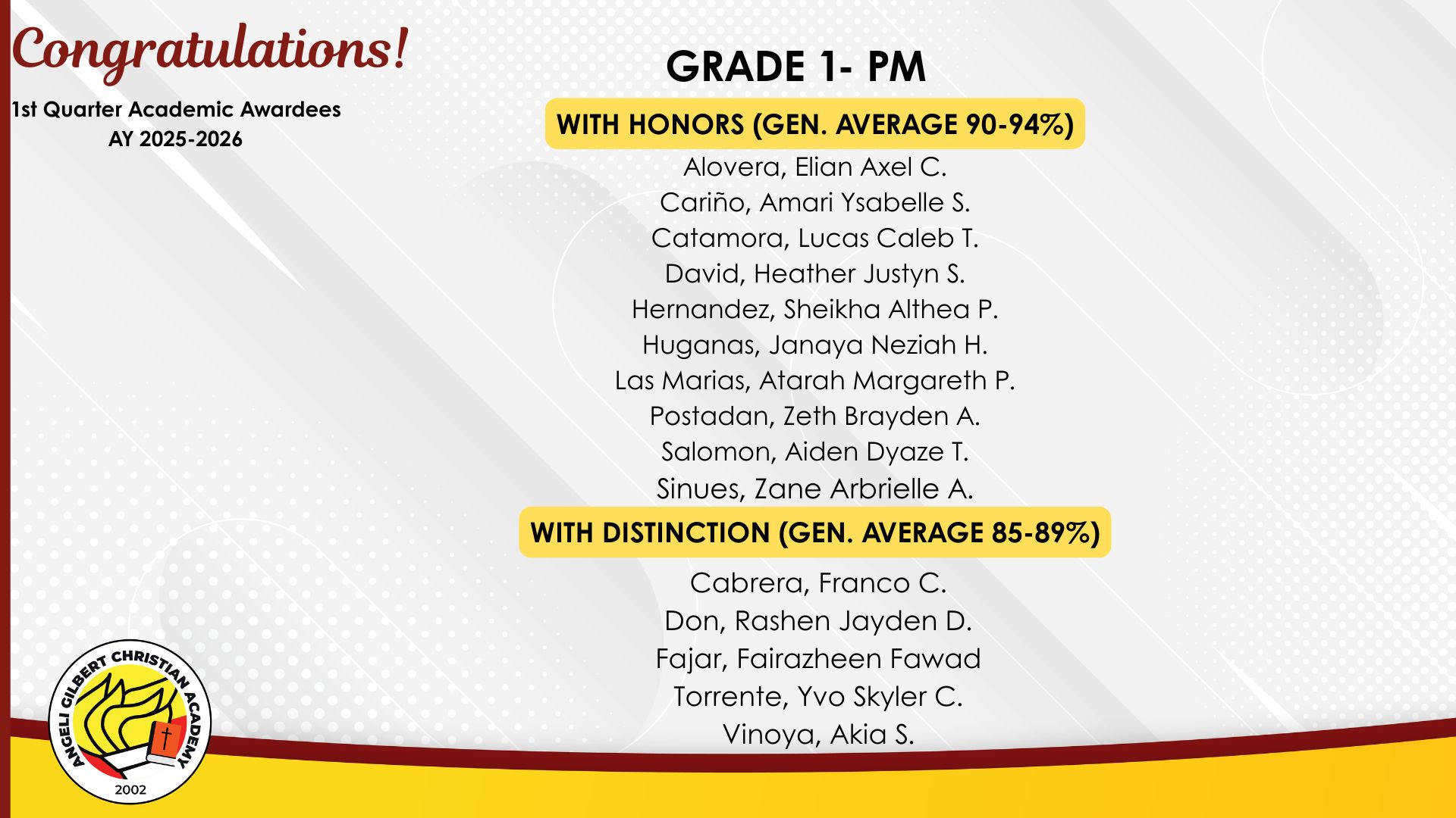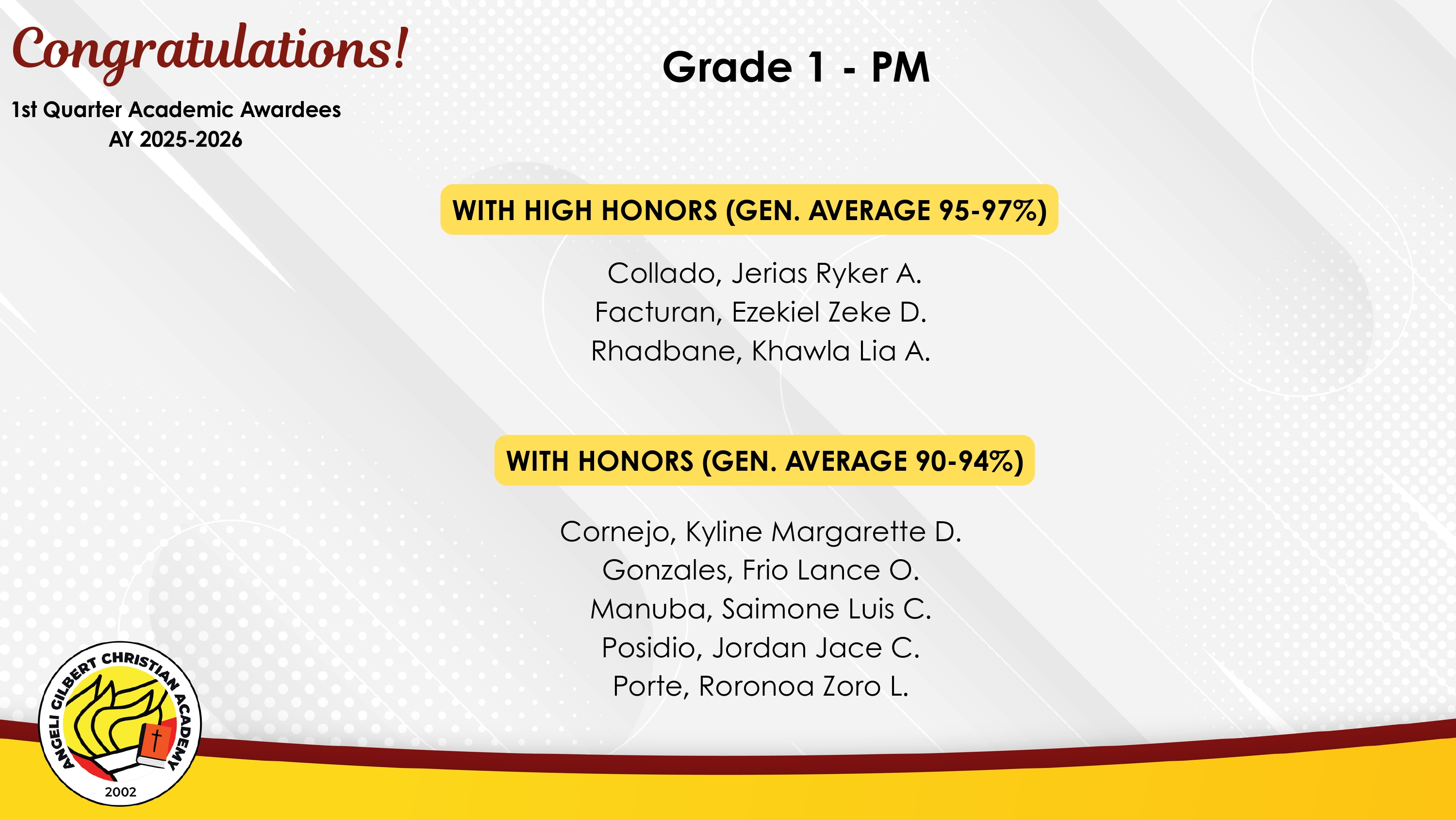 Grade 1 - PM Class Awardees