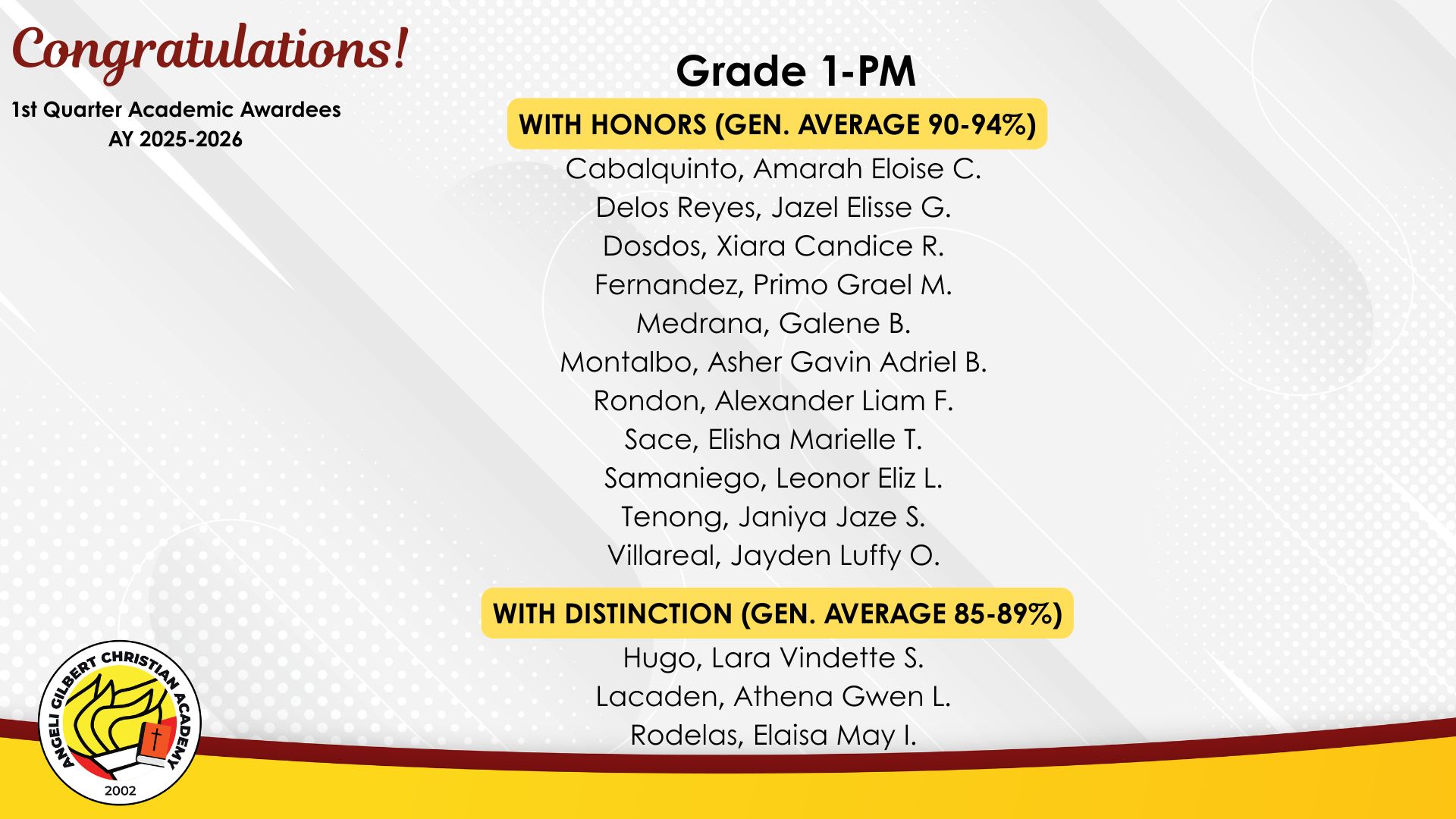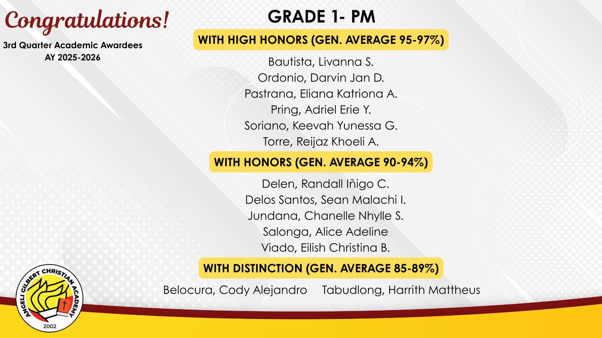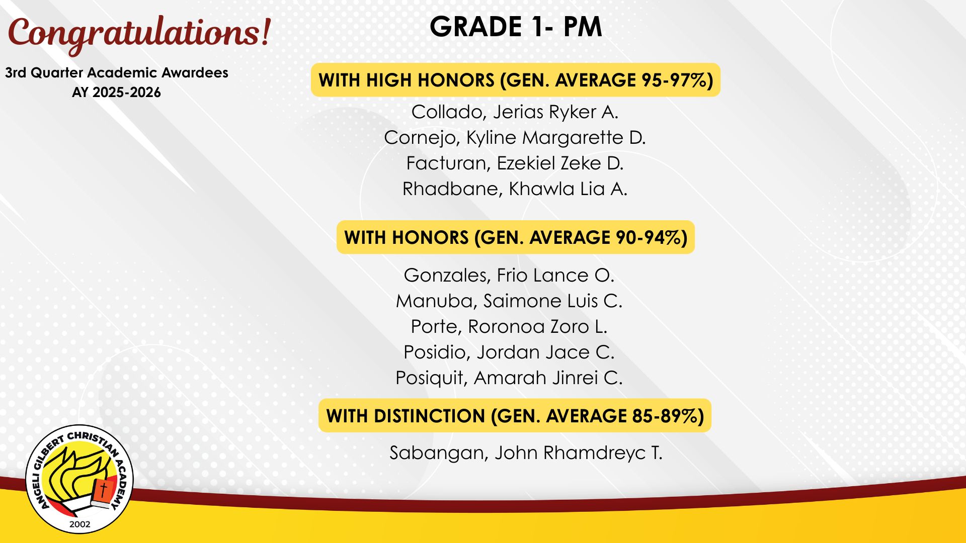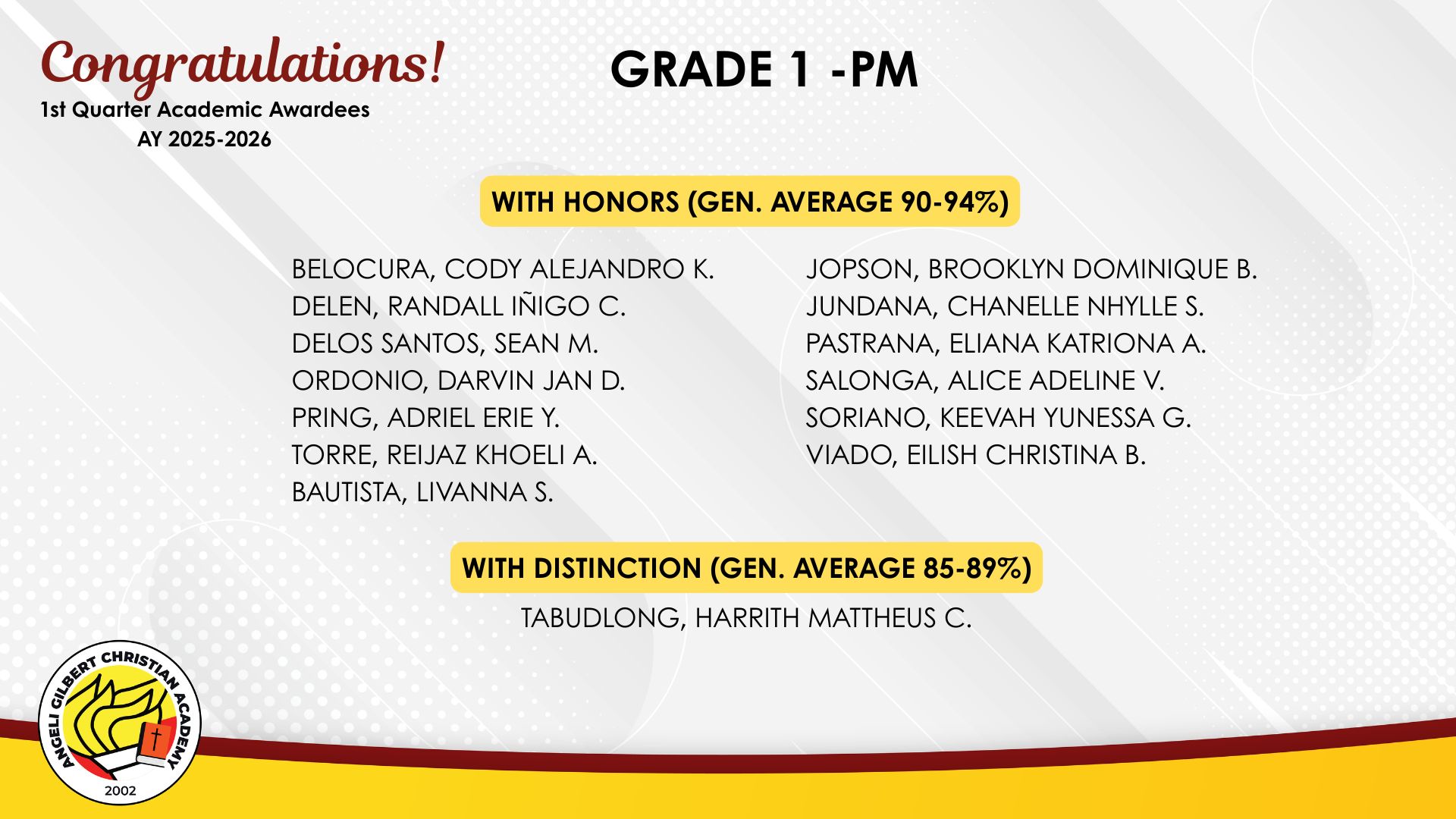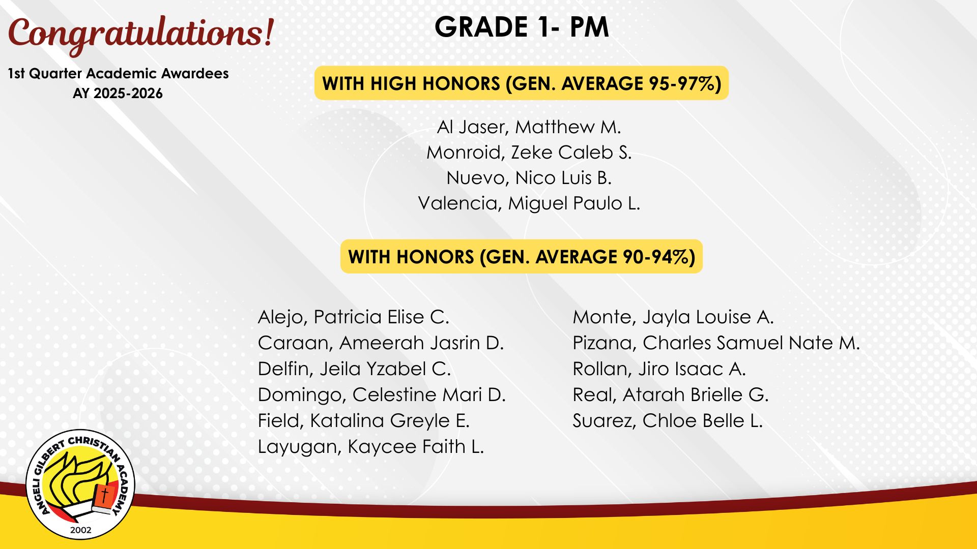 Grade 1 - PM Class Awardees