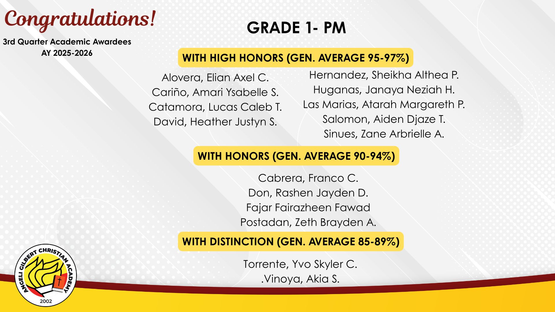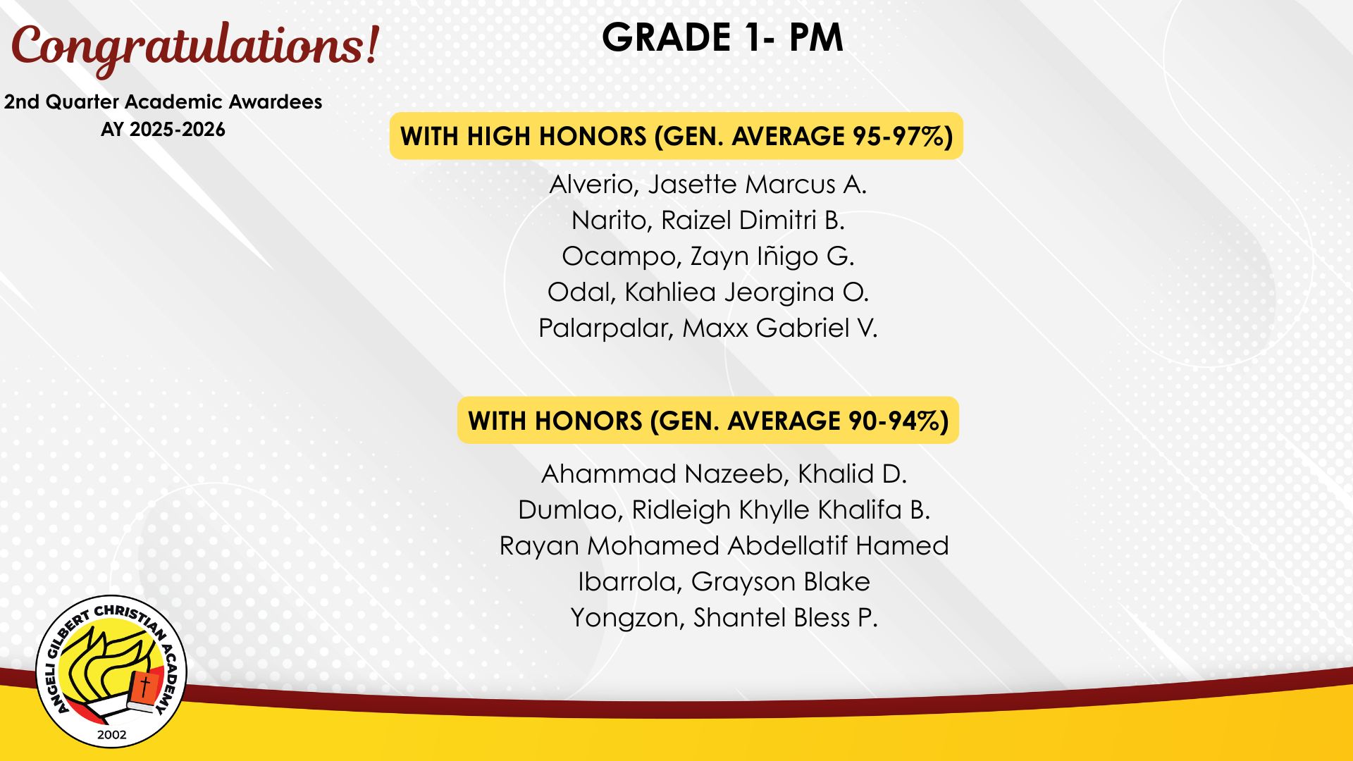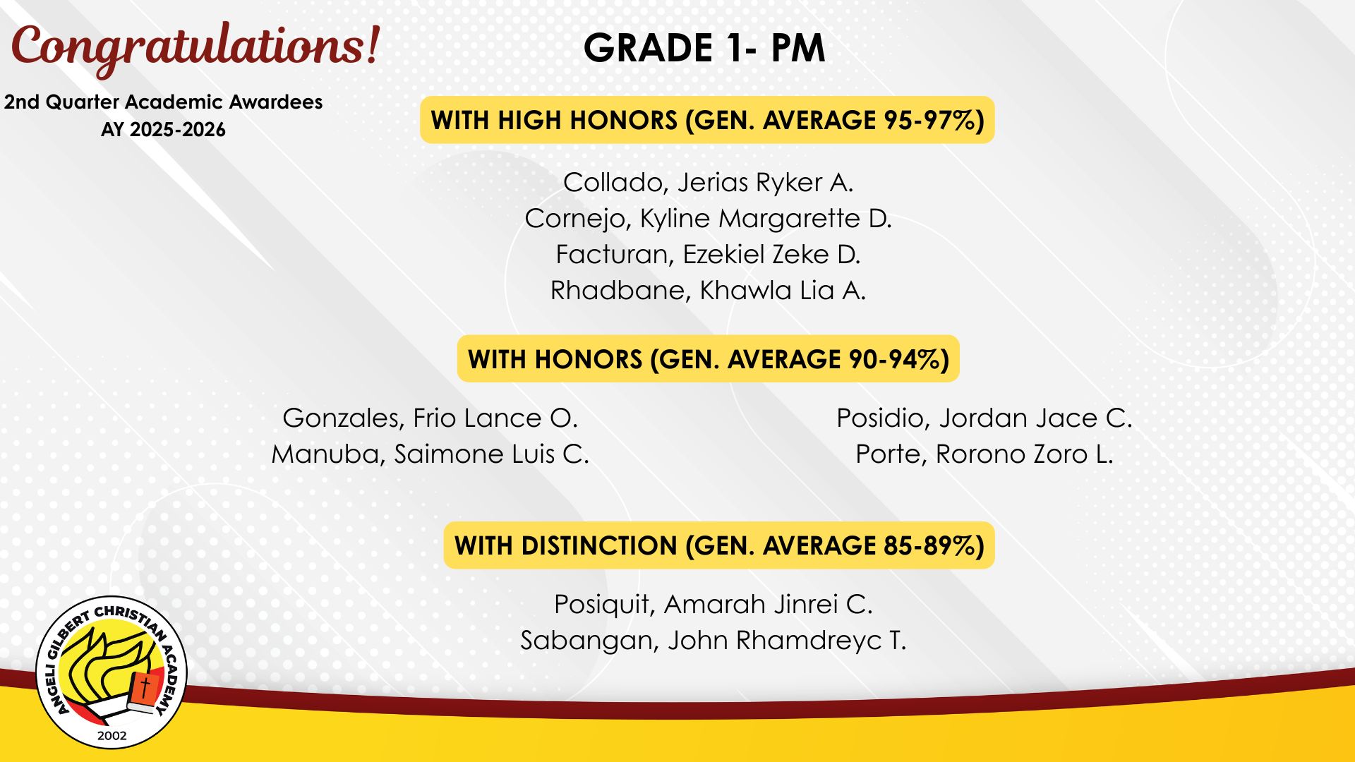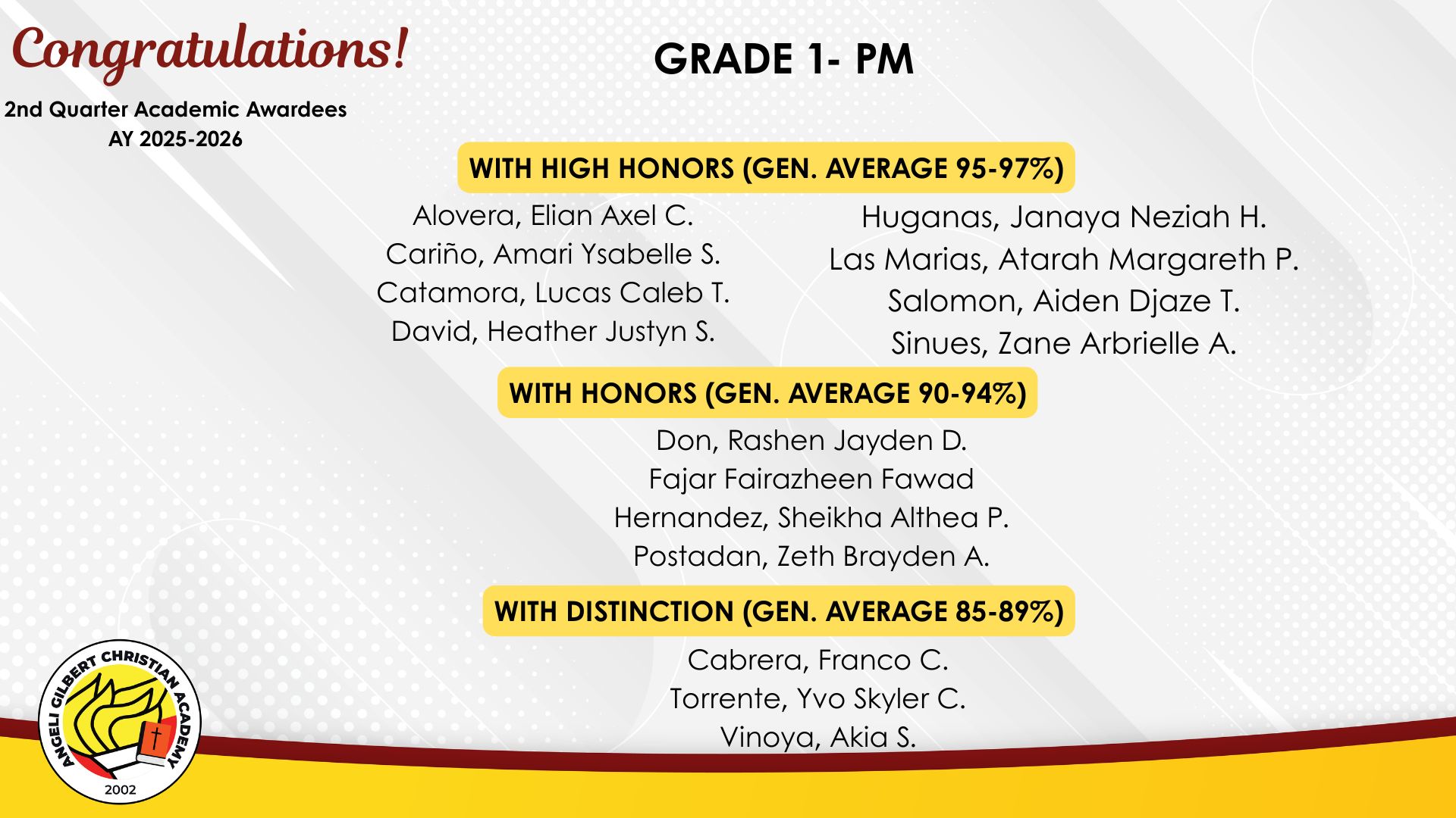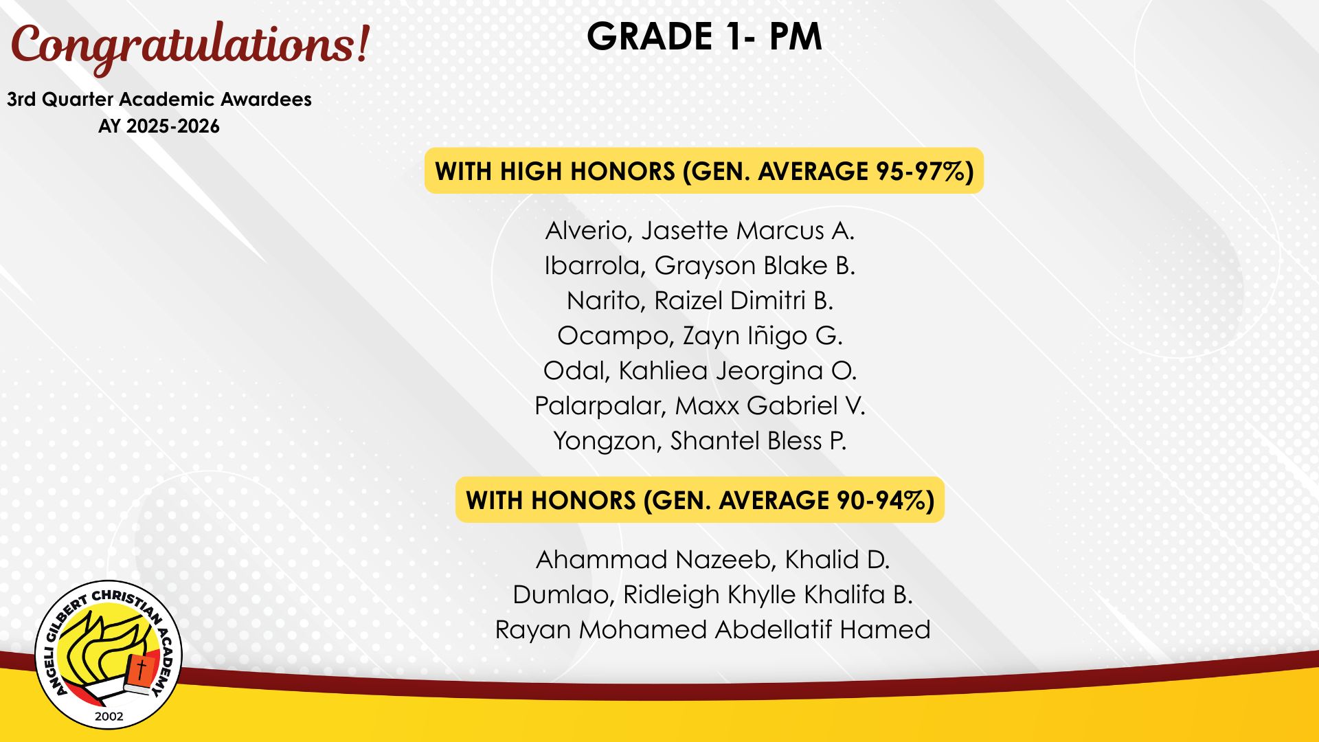 Grade 1 - PM Class Awardees