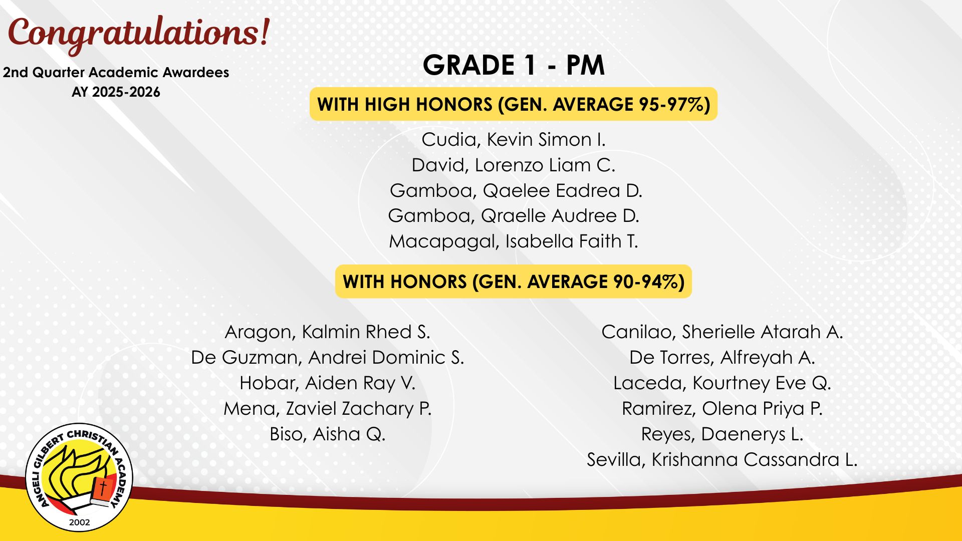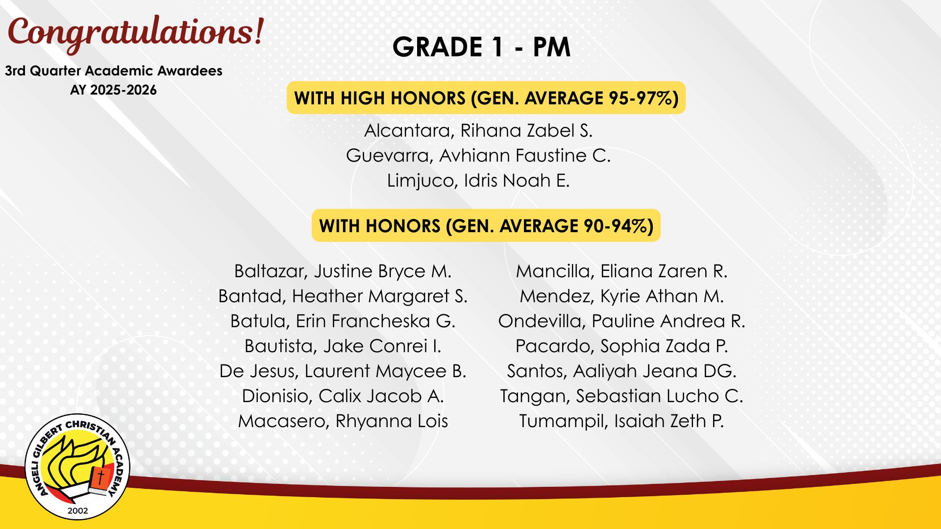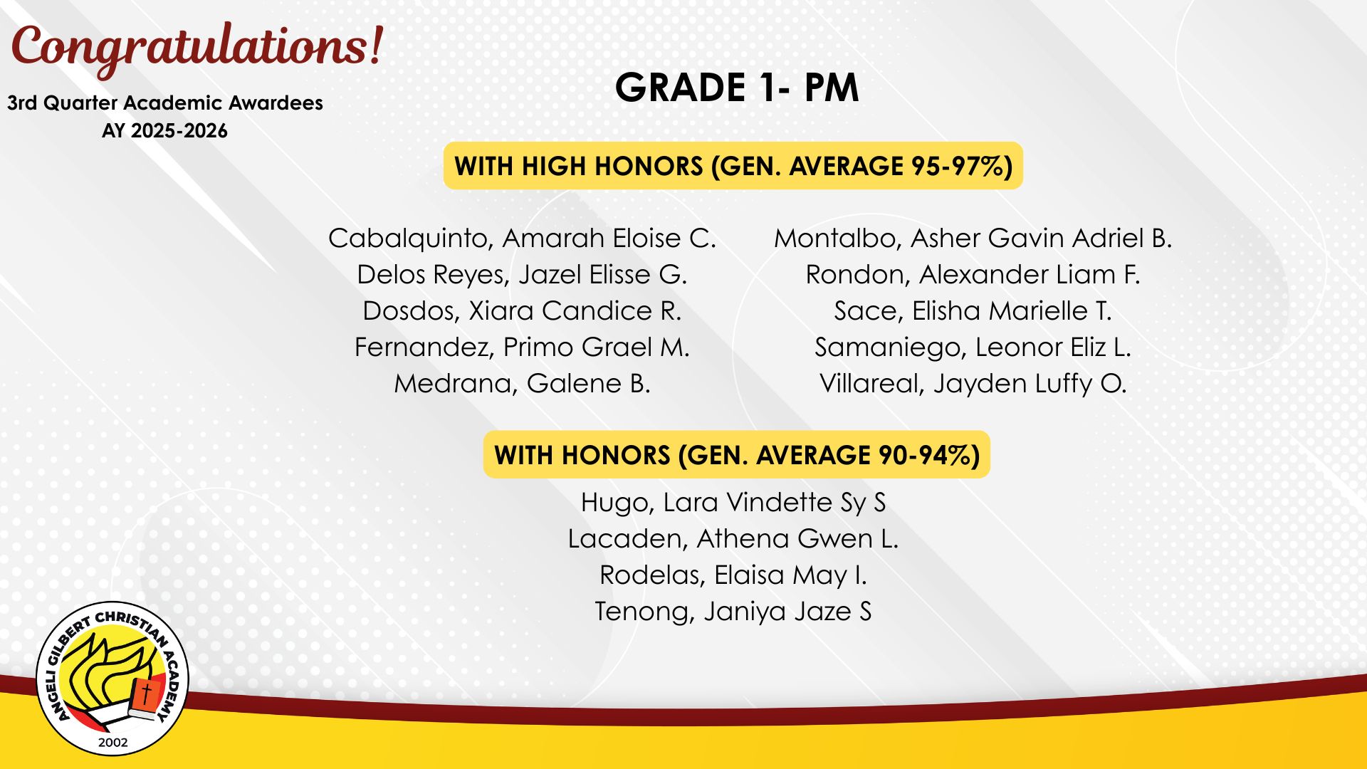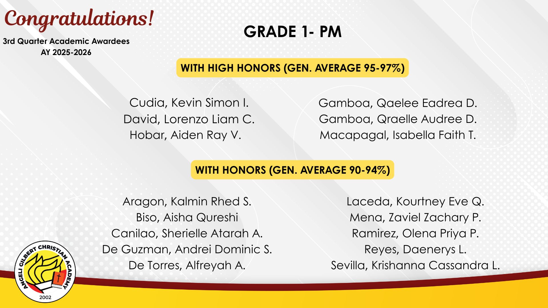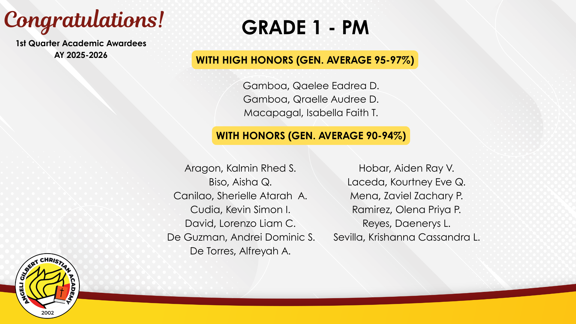 Grade 1 - PM Class Awardees