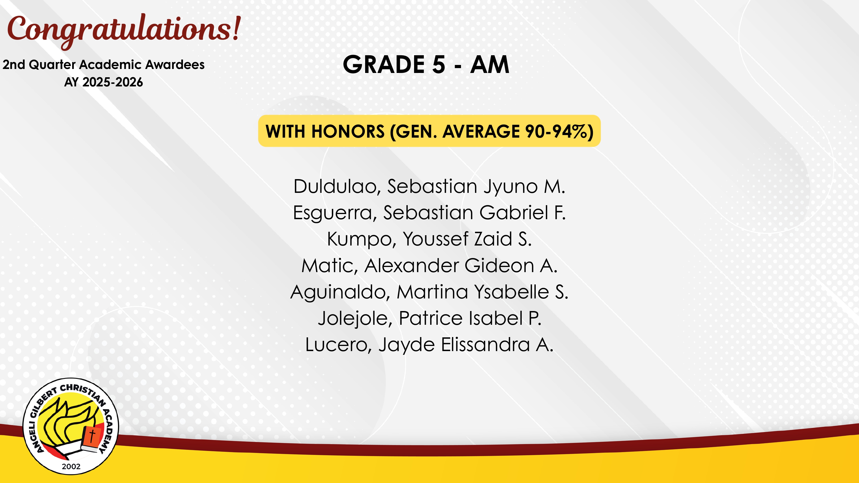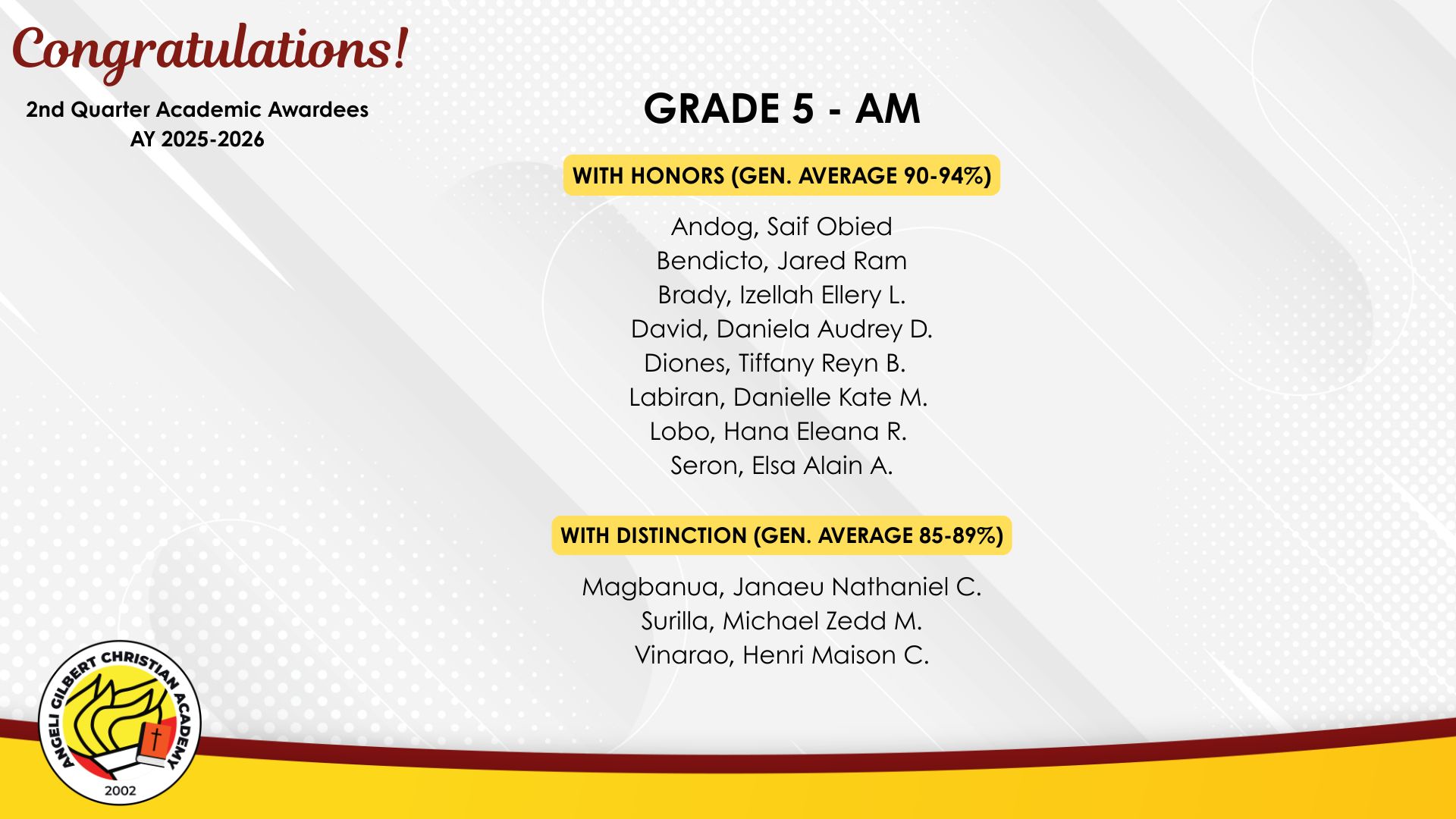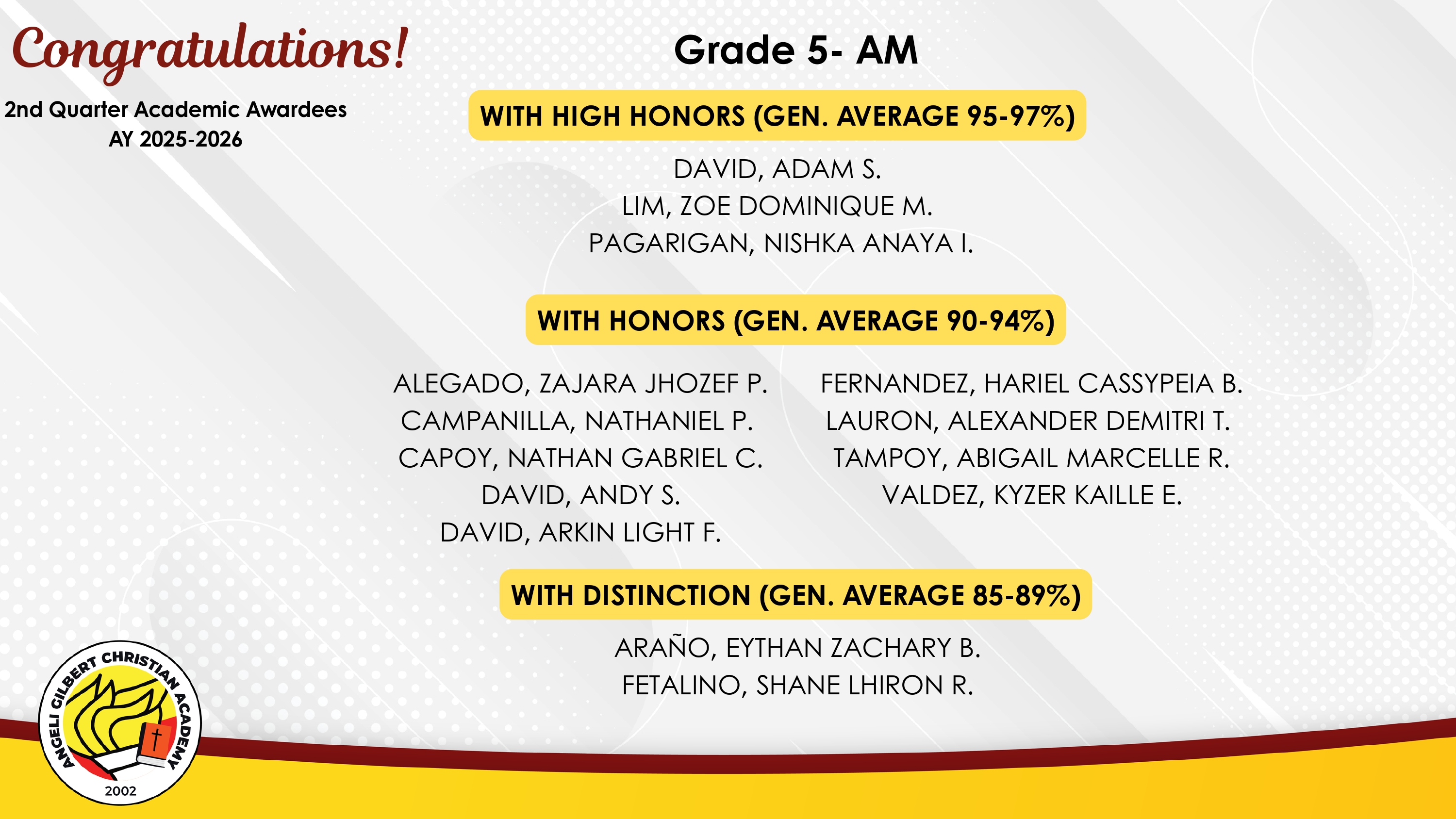 Grade 5 - AM Class Awardees