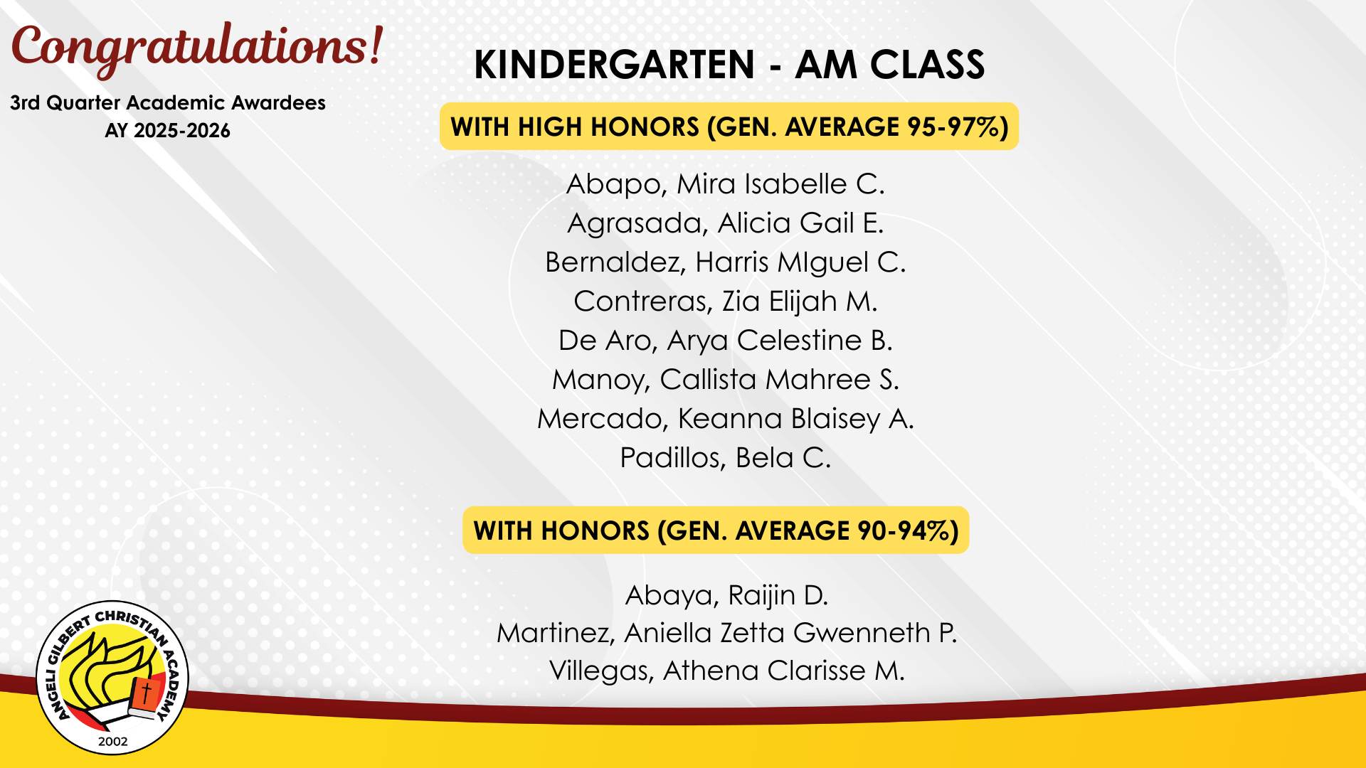 Advanced Level - AM Class Awardees