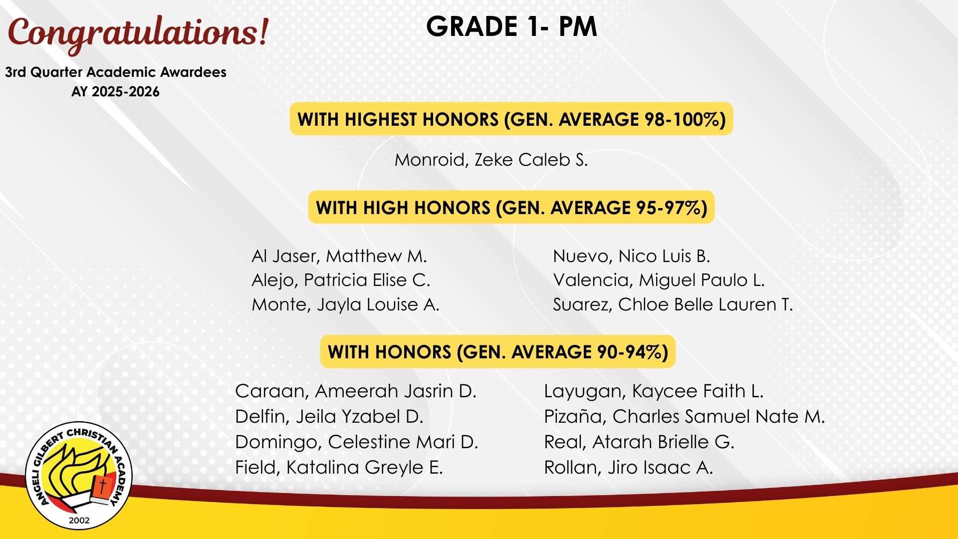 Grade 1 - PM Class Awardees