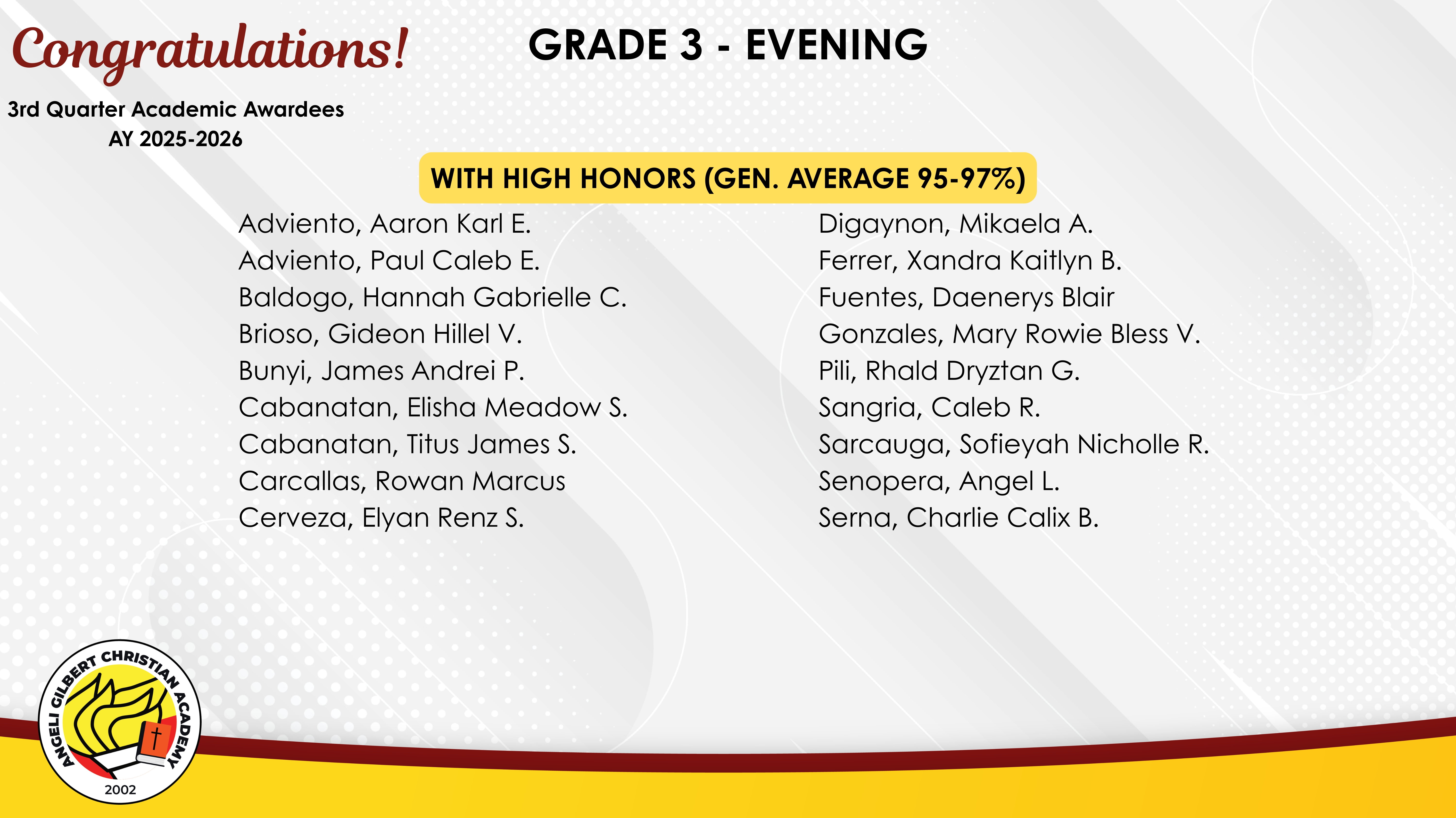Grade 3 - Evening Class Awardees
